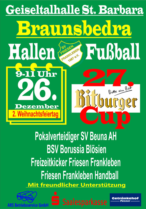 Wie jedes Jahr findet im Geiseltal Hallenfußball am zweiten Weihnachtsfeiertag statt. Der SV Friesen Frankleben präsentiert