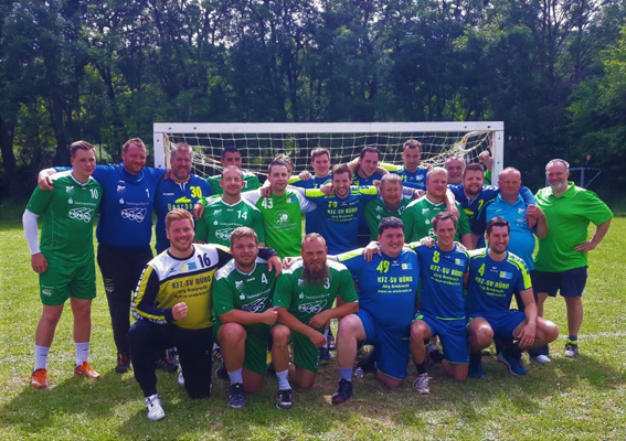 Neben drei ehemaligen Handballern der ersten Stunde waren Gymnastikkinder, eine Handball-Männermannschaft und Friesenfans beim Sporttag auf dem Billingshäuser Sportplatz dabei.