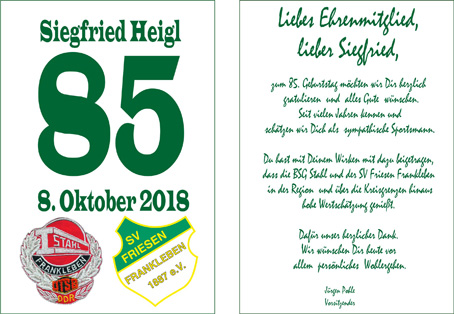 Glückwünsche zum 85. Geburtstag an Siegfried Heigl
