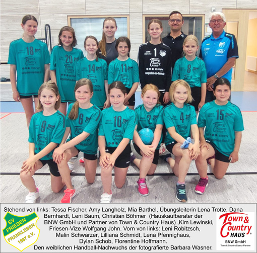 Die BNW GmbH – Partner von Town & Country Haus mit Geschäftsführer: Bernd Bräunig aus Frankleben hat erneut ein Herz für Kinder und den Nachwuchssport beim SV Friesen. Initiiert und in die Wege geleite von Hauskaufberater Christian Böhmer überreichte dieser kürzlich für den gesamten weiblichen Nachwuchs der AK 9-12 einen Satz Sportkleidung. Übungsleiterin Lena Trotte und Friesen-Vize Wolfgang John