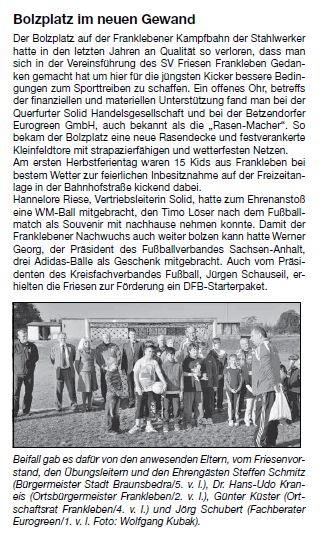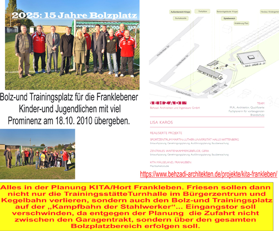 Am 18.Oktober 2010 wurde der Bolzplatz übergeben.Er wurde zu einer Kinder- und Jugendfreizeiteinrichtung die rege genutzt wird.
