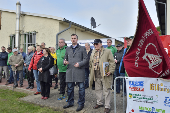 Vor dem Fußballspiel zwischen dem SV Friesen und dem SV 1916 Beuna (3:3), dass der ehemalige FIFA-Schiedsrichter Adolf Prokop leitete, konnte Vereinschef Jürgen Pohle auch Bürgermeister Steffen Schmitz, Ortsbürgermeister Günter Küster, den ehemaligen Ortsbürgermeister Edgar Preller, die Präsidentin des Kreissportbundes Angela Heimbach, die Geschäftsführerin des Kreissportbundes Steffi Meyer, den ehemaligen Direktor des Instituts für Ausländerstudium an der DHfK Leipzig Dr. Lothar Kalb und die ehemalige Handball-Nationalspielerin Cornelia Franz begrüßen.