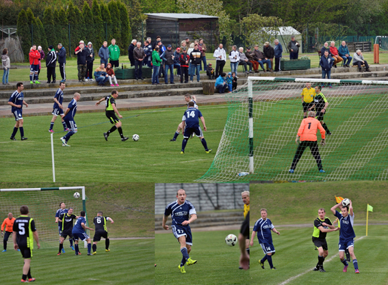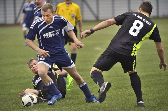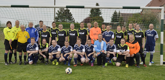 SV Friesen (blau) und SV Beuna mit den Unparteiischen Matthias Eichhorn, Stefan Kupski, Adolf Prokop
