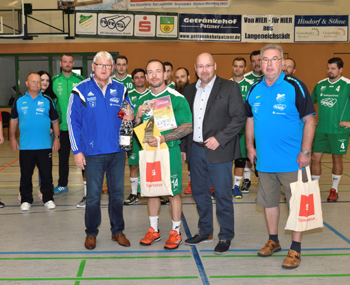 Großer Bahnhof trotz Corona in der Braunsbedraer Geiseltalhalle „St. Barbara“ vor dem ersten Handballheimpunktspiel in der Männer-Verbandsliga. Friesen-Eigengewächs Steffen Holzapfel wird als bester Torschütze der Verbandsligasaison 2019/209 ausgezeichnet. HVSA-Geschäftsführer Denis Engel gratulierte Steffen Holzapfel zu den 248 Toren (Durchschnitt pro Spiel 13,78) und überreichte den Torjäger-Pokal und die dazu gehörige Urkunde.