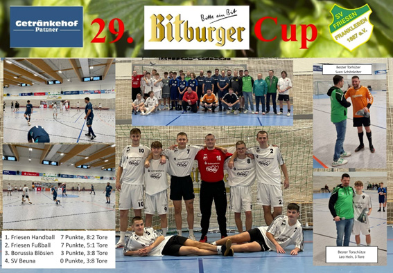 Das Turnier wurde eröffnet mit dem Spiel zwischen Braunsbedra und Buna Schkopau. Hier zeigte sich schon, dass eine stabile Abwehr der Schlüssel zum Erfolg werden sollte, denn beide Mannschaften standen später auch im Finale. Das Spiel endete mit 1:1. Das zweite Spiel war ein Torspektakel zwischen Röglitz und den Kraftfahrern, welches die Kraftfahrer mit 5:4 gewinnen konnten. Es folgte Leuna gegen Beuna. Hier konnte sich Leuna knapp mit 2:1 durchsetzen. Im 4. Spiel konnten dann endlich auch die Friesen gegen Röglitz ins Turnier starten. Die Friesen, um Abteilungsleiter Christoph Nentwig und den beiden Mannschaftsverantwortlichen Marko Möhring und Marko Küster, wollten auch mit einer stabilen Abwehr und Ihrem Torschützen vom Dienst Steffen Holzapfel die Gruppenphase überstehen. Dies gelang und man konnte das 1. Spiel im Turnier gegen Querfurt mit 2:0 gewinnen. Die weiteren Ergebnisse der Vorrunde waren Braunsbedra vs. Leuna 2:0, Röglitz vs. Frankleben 0:1, Beuna vs. Buna 1:2, Querfurt vs. PNVG 1:0, Buna vs. Leuna 2:1, PNVG vs. Frankleben 2:1, Beuna vs. Braunsbedra 0:1 und Querfurt vs. Röglitz 3:1. Das Minimalziel Halbfinale war somit für die Friesen erreicht.