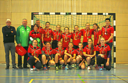 Hinten weiter v. l.: Physiotherapeutin Sandra Streit, Übungsleiter Torsten Langner, Sophie Jursch, Lene Charlot Freyberg, Lilli-Antonia Döscher, Paula Hebestreit, Kim Ernst, Vanessa Mischner, Übungsleiterin Cornelia Franz. Vorn v. l: Ramona Albrecht, Emilia Kloß, Hannah Kleiber, Anja Streit, Annabell Niemtz, Anika Klein. Nicht auf dem Foto Marie Penger.