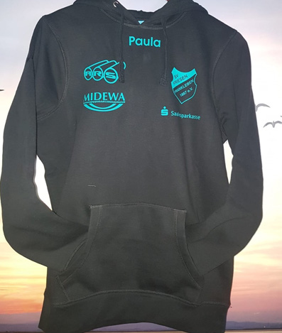 Neben Pokal, Urkunde und Medaillen vom HVSA gab es dank der Unterstützung durch Ortsbürgermeister Günter Küster noch als Präsent für das Team Kapuzensweatshirts.