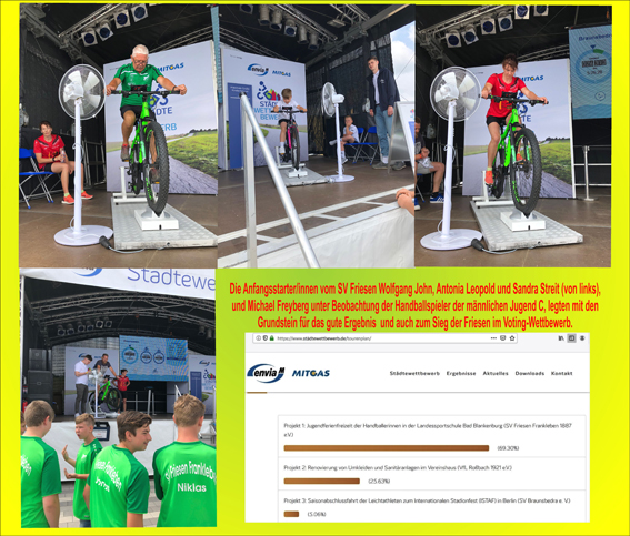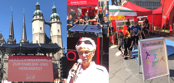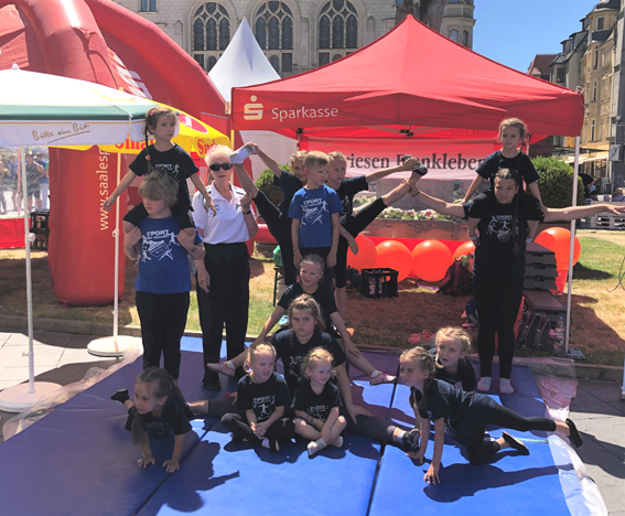 Die Kinderturngruppe vom SV Friesen Frankleben gehörte anlässlich des 200jährigen Jubiläums der Saalesparkasse am 29. Juni mit zu den 40 Vereinen aus der Region, die sich auf dem Marktplatz in Halle beim Familien- und Vereinsfest präsentierten. Die 28 Kinder und Helfer um Übungsleiterin Christine Fiedler und Betreuerin Elke Horn zeigten ihr Können auf der großen Eventbühne und am eigenen Infostand.