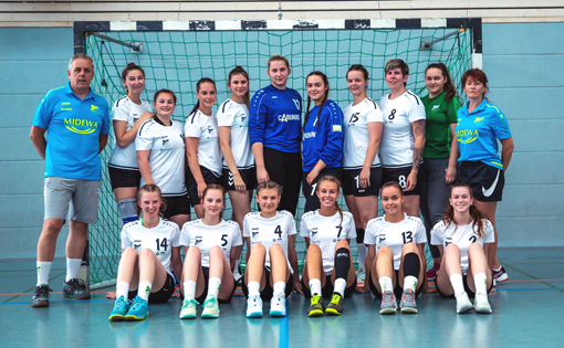 Hinten von links: Übungsleiter Torsten Langner, Sophie Jursch, Lilli-Antonia Döscher, Annabell Niemtz, , Annabell Niemtz, Vanessa Mischner, Svea Becker; Ramona Albrecht, Sandy Spielberg, Jeannine Schönburg, Tatjana Albrecht, Physiotherapeut Sandra Streit. Sitzend von links: Jule Hebestreit, Paula Hebestreit, Nele Rennert, Hannah Kleiber, Josephin Knapps, Anja Streit. Foto: Jenny Hebestreit.