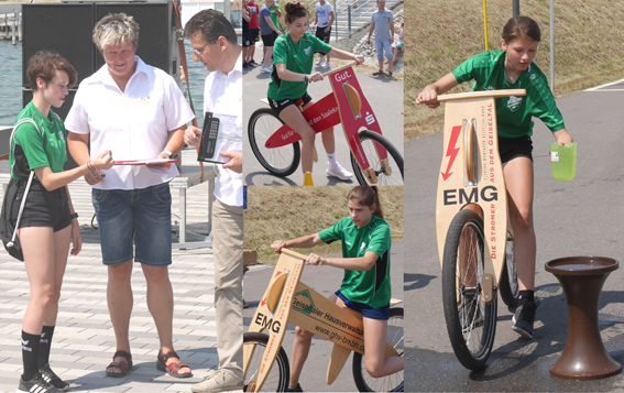 So startete beim alljährlichen Laufradrennen der GW Geiseltaler Wohnungsgesellschaft mbH zum Gewerbe- und Vereinsfest erstmals eine Mädchenmannschaft. Die Handballspielerinnen der weiblichen Jugend B schlugen sich sehr achtbar und können mit der erhaltenen GW-Spende ihre Ferienfreizeitkasse an der Sportschule in Bad Blankenburg aufbessern.