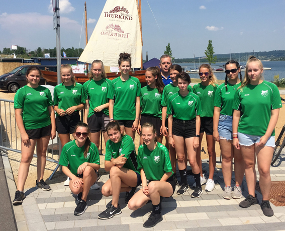 Die weibliche Jugend B von links: Emilia Kloß, Lene Freyberg, Kim Ernst, Sophie Jursch, Annabell Niemtz, Torsten Langner, Nele Rennert, Anja Streit, Hannah Kleiber, Ramona Albrecht, Anika Klein.