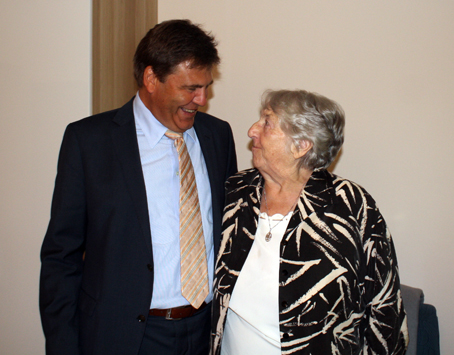 Mittlerweile wohnt sie in einem Altenpflegeheim im bayrischen Karlsfeld (Kreis Dachau) in der Nähe ihrer Familie. Die dortige Lokalpresse berichtete unter dem Titel „Eine rundum glückliche 90-jährige“. Zum Jubiläum gab es für „Hilde“ auch einige Überraschungen. So gab es Glückwünsche in dem kleinen Zimmer im St. Josef Altenheim vom Karlsfelder Bürgermeister Stefan Kolbe (Foto: REG) und sogar vom Dachauer Landrat.